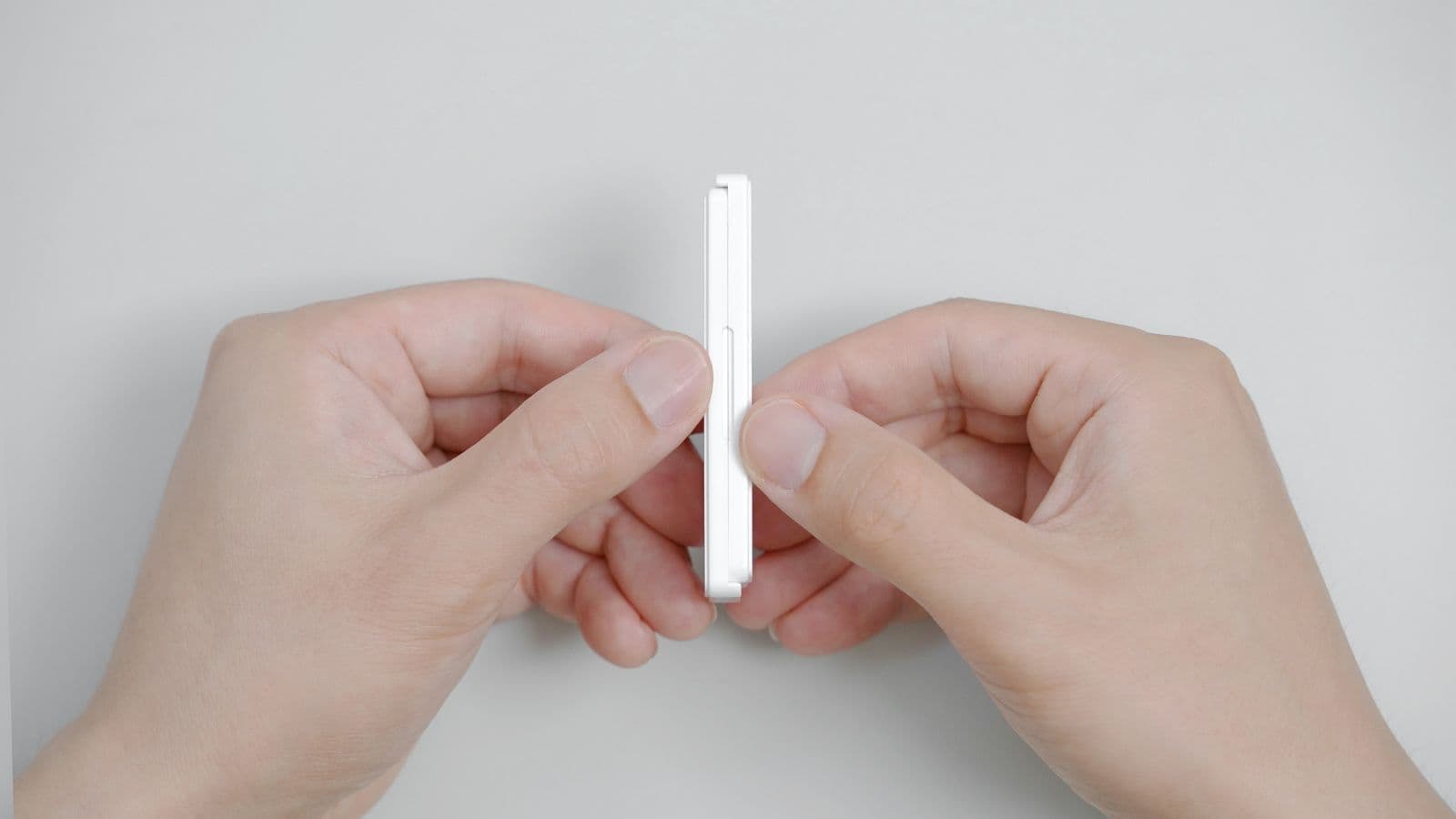 手元の紙資料や物を相手に共有しながらビデオチャットができるノート/タブレットPCアクセサリー。鏡の反射によるアナログな仕組みで実現している。折りたたんで、カバンに収納し持ち運ぶことが可能。