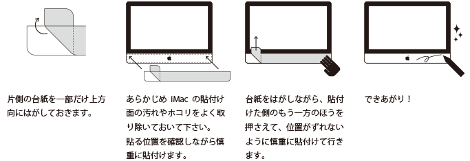iMac本体に付着したチリ・ホコリや汚れをよく落としてから貼ることをおすすめします。